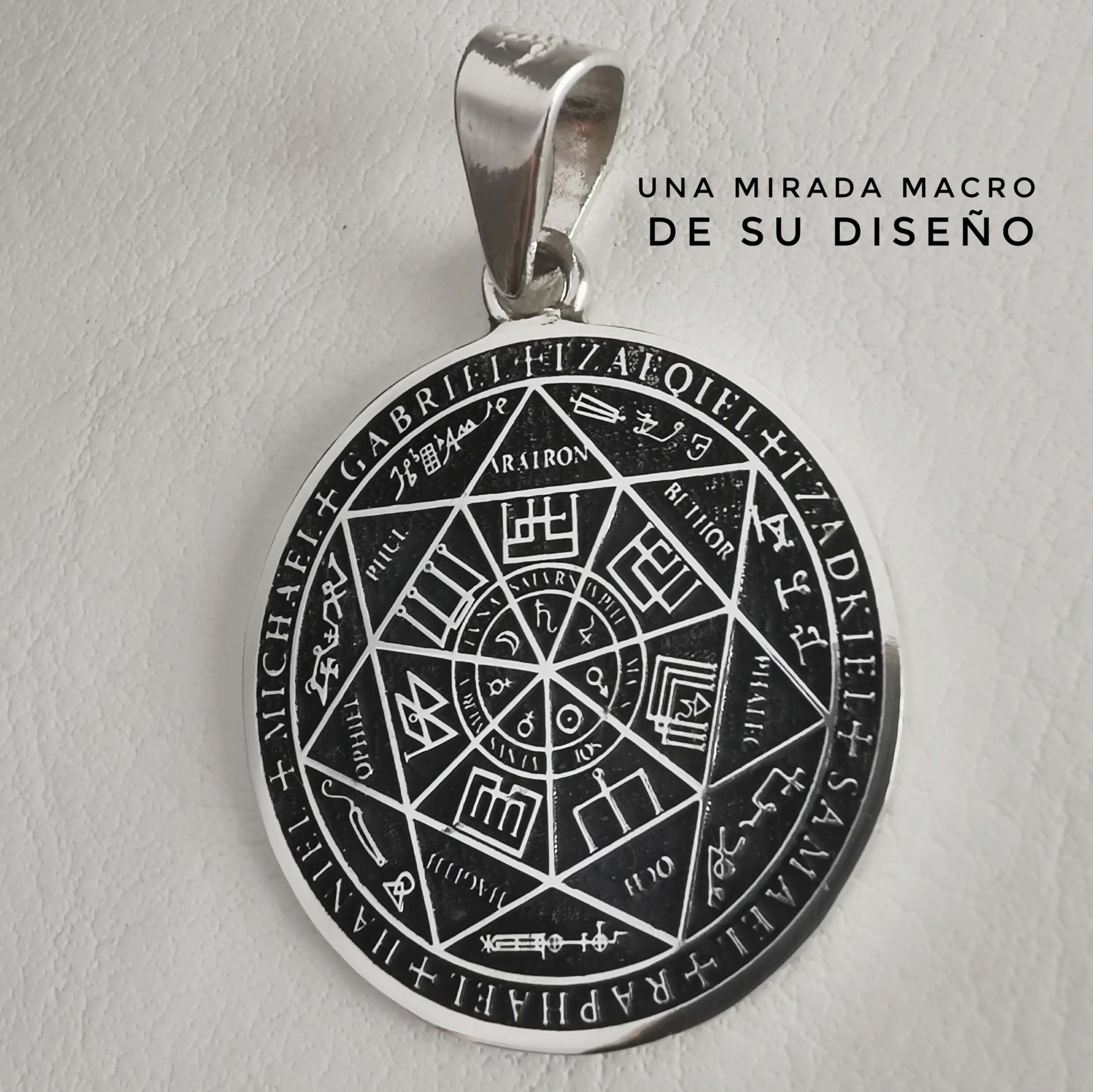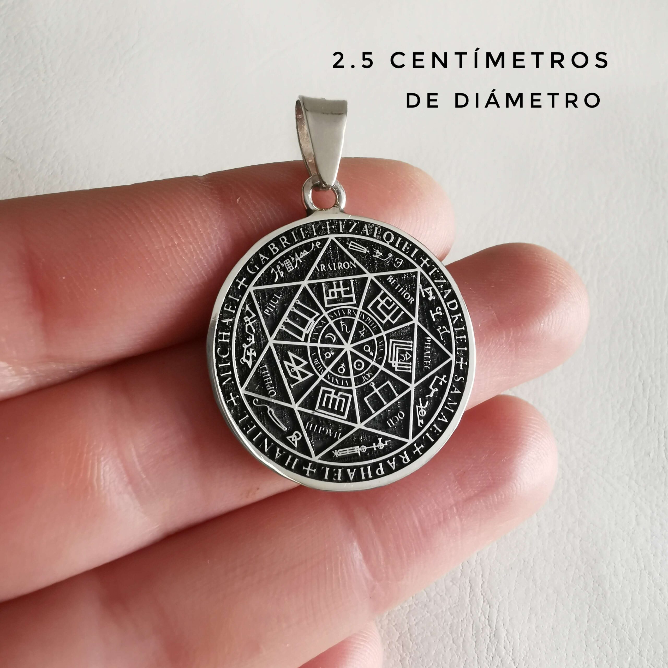 Diseño significativo y atemporal: su forma redonda de tamaño medio (2.5) y el sello de los arcángeles la hacen un complemento elegante y lleno de simbolismo