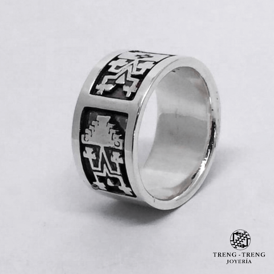 El anillo Lukutuel esta trabajado en plata ley 950, con un diseño inspirando en iconografía Mapuche. Representa a un ser en posición de rogativa u oración, un símbolo de conexión, fuerza y trascendencia.